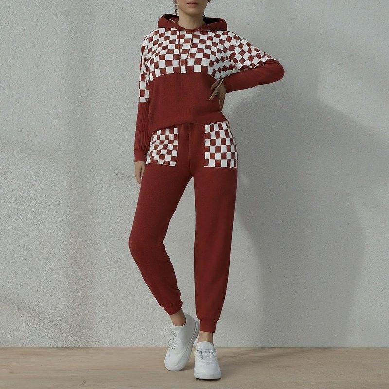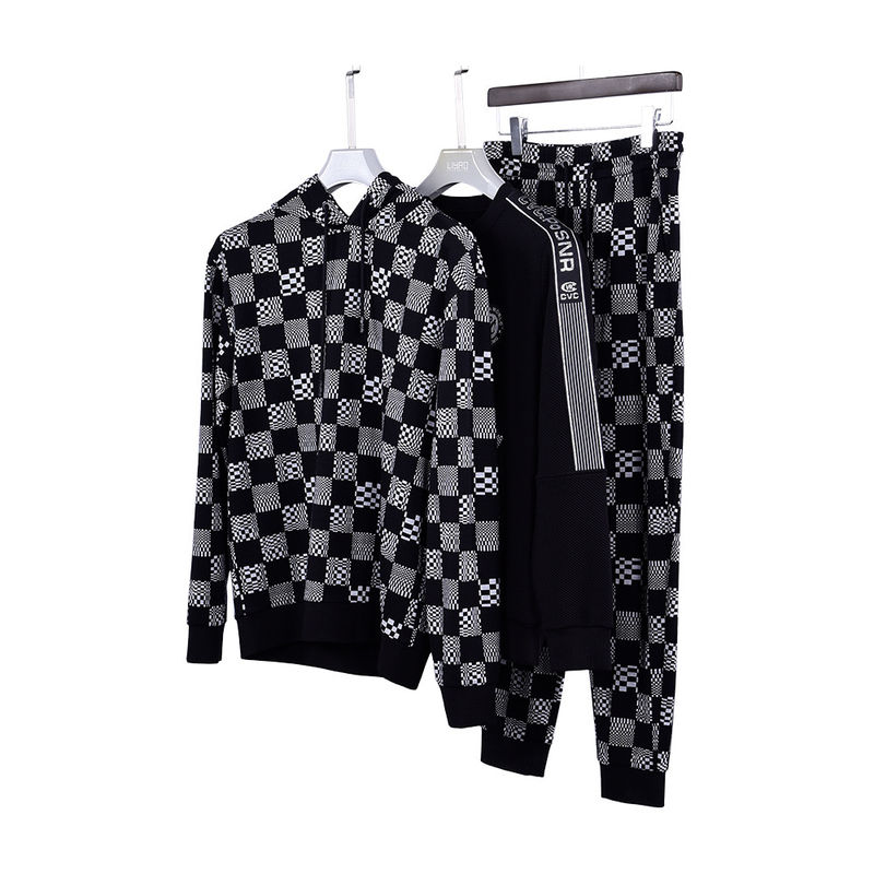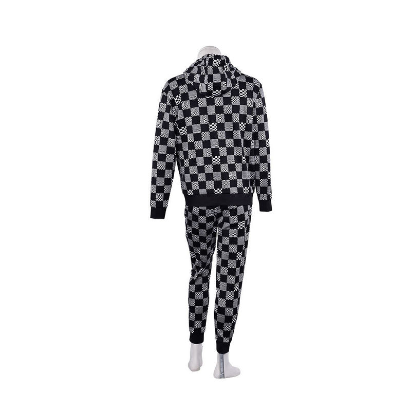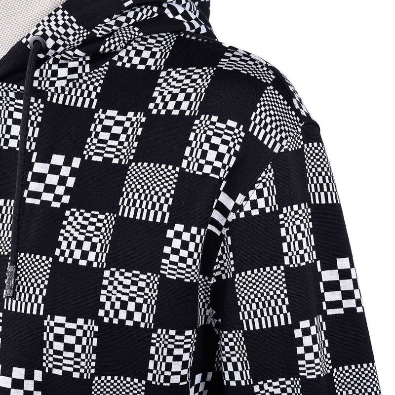 পুরুষদের চেকারবোর্ড হুডি এবং ট্র্যাক প্যান্ট টেরি জগার স্পোর্ট স্ট্রিটওয়্যার সোয়েট প্যান্ট সেট